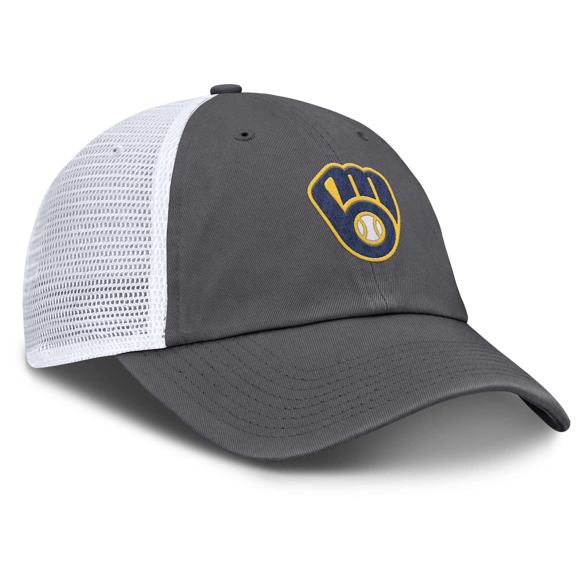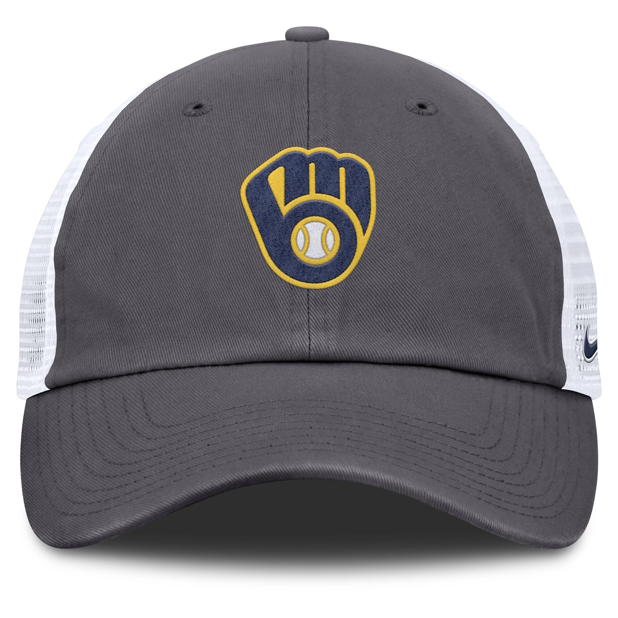 Complete your Milwaukee Brewers game-day look with this adjustable trucker hat from Nike. This Milwaukee Brewers trucker hat features a classic six-panel design with embroidered graphics on the front panels, letting you represent your team with pride. With mesh mid and rear panels, this hat provides enhanced breathability, ensuring you stay cool and comfortable whether you’re at the ballpark or out and about.
